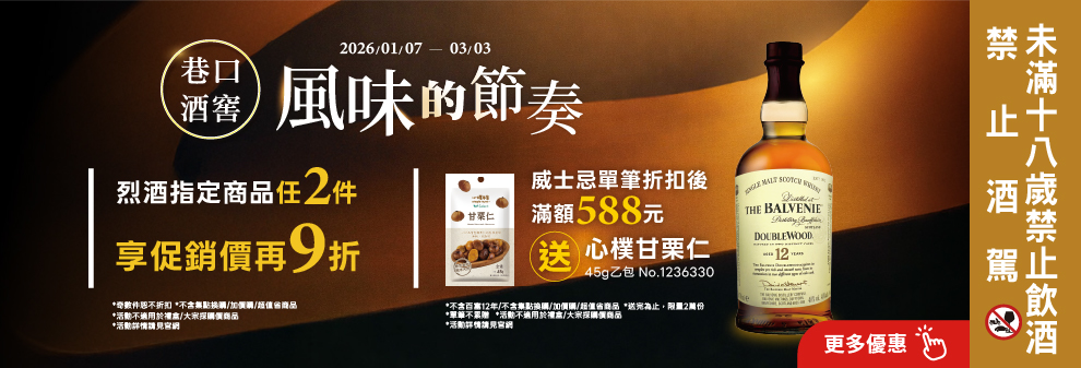威士忌單筆(折扣後)滿額588元即贈心樸甘栗仁45g乙包